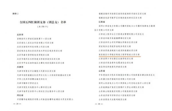 2021年五四青年节前夕,共青团中央公布了《关于表彰2020年度“全国五四红旗团委(团支部)、“全国优秀共青团员”、“全国优秀共青团干部”的决定》,南昌航空大学航空制造工程学院凌云团支部荣获“全国五四红旗团支部”荣誉称号。