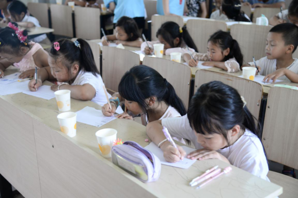 (图为东华理工大学文法学院推普助力乡村振兴社会实践团队开展的书法戏剧小课堂。周冠达、董梦茹供图)