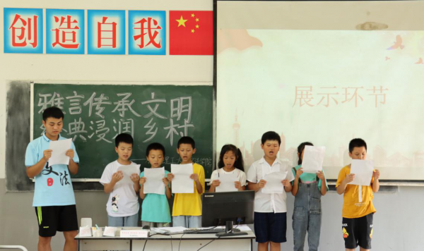 团队成员与孩子们一起进行了普通话诵读技巧与朗读规范的学习,并开展了“经典咏流传诵读大会”,组织3-6年级的当地学生观看2019、2020年全国小学生组“中华经典诵读”的影片以及由东华理工大学文法学院推普助力乡村振兴社会实践团队制作的趣味手绘视频,教学结合,引领同学们在诵读中走近中华经典,感悟汉字的独特魅力。