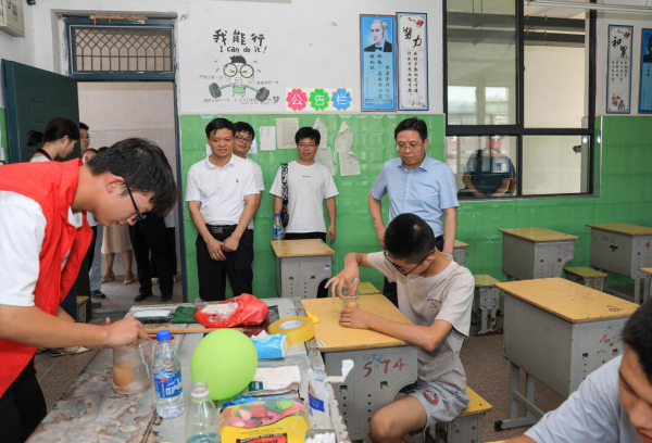 在理电学院的家电维修和趣味物理教学实践点,志愿者们正在维修家电和展示趣味物理实验。梅国平细致询问志愿者们在调查、饮食、住宿等方面的情况,对大家深入基层开展社会实践给予肯定。梅国平表示,新时代的大学生要到基层中去,在劳动与实践中学习课本上学不到的宝贵经验,在广阔天地大显身手,用自己所学推进新时代文明实践中心建设,向社会展现江西师范大学学子的精神风貌,将青春力量融入乡村振兴的广阔舞台之中。