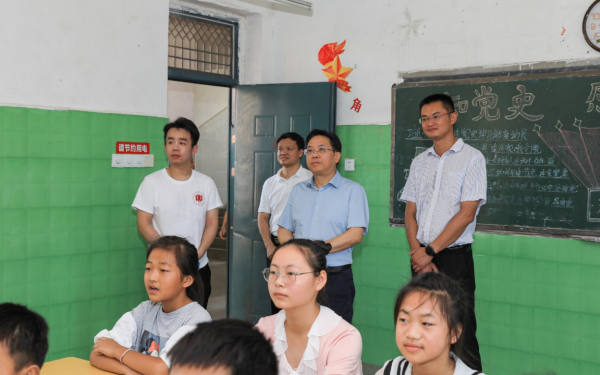 7月14日,黄恩华、涂宗财一行来到樟树市店下镇、阁山镇,看望正在开展社会实践的马克思主义学院、政法学院等学院的师生。宜春市委常委、组织部部长余正琨,樟树市委书记董晓明、市长尹志来等有关同志和学校相关部门负责人陪同看望。
