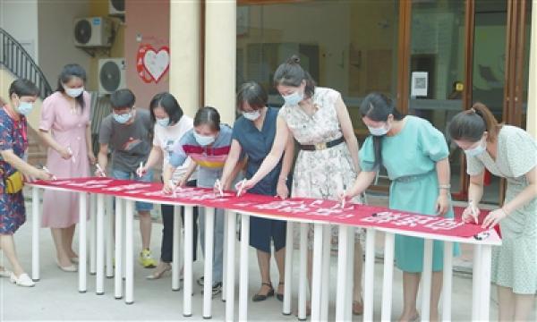 8月18日,南昌市青山湖区塘山镇湖滨社区的党员干部在“向违规升学宴谢师宴说不”的条幅上签名。该镇纪委开展警示教育,督促党员干部遵守廉洁自律规定,以及疫情防控工作要求。(图文/人民网 编辑/张媛媛)
