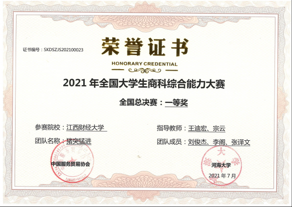 江西财经大学学子荣获全国大学生商科综合能力大赛全国总决赛一等奖