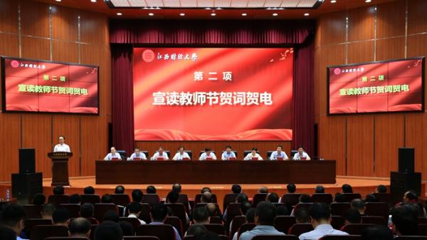 大会学习了习近平总书记给全国高校黄大年式教师团队代表的回信精神,宣读了财政部发给江西财经大学的教师节贺电。