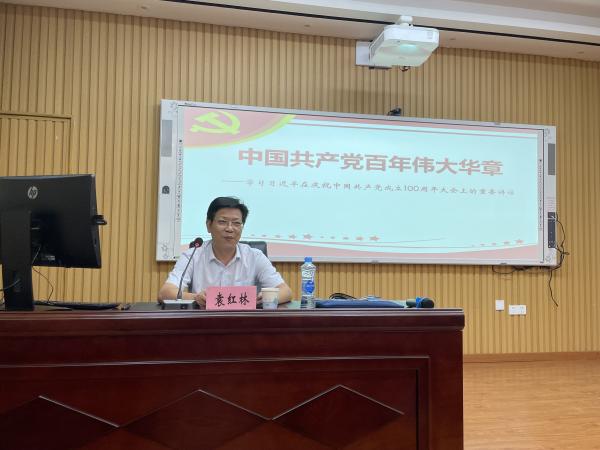 袁红林通过深入解读习近平总书记“七一”重要讲话精神,深刻阐明了近代以来我国社会发展的规律性认识,深刻阐明了我们党的执政理念和执政方略,深刻阐明了我们党对重大国内外问题的原则立场。引导师生要把握“七一”重要讲话精神实质,从党的百年奋斗史中汲取前进的智慧和力量。报告最后,袁红林强调当前我国正处于“两个百年的交汇点上”,将面临一系列新的挑战,呼吁当代大学生要为实现中华民族伟大复兴的中国梦而努力奋斗。