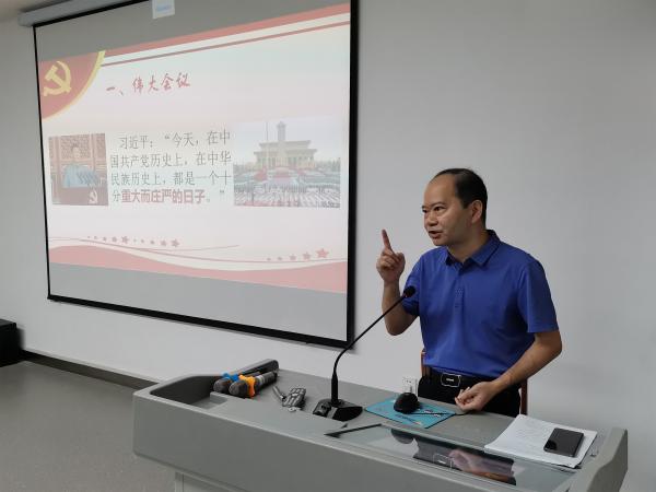 9月8日下午,江西财经大学校党史学习教育宣讲团成员,党委常委、副校长阙善栋到国际经贸学院宣讲习近平总书记“七一”重要讲话精神。学院领导班子和全体教师到场聆听。