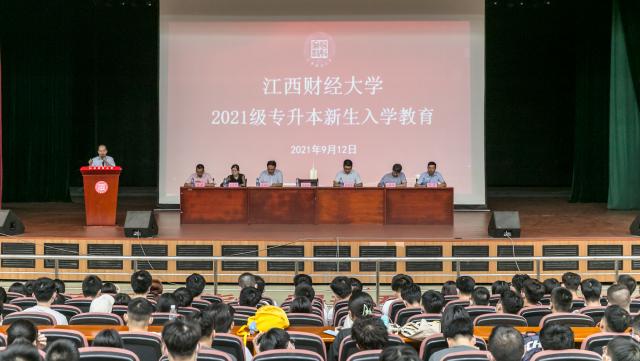 9月12日上午,江西财经大学举行2021级专升本新生入学教育。副校长李春根出席并致辞,教务处、工商管理学院、软件与物联网工程学院、信息管理学院、艺术学院、VR现代产业学院等单位负责人以及教师代表、2021级全体专升本新生共计500余人参加活动。活动由VR现代产业学院副院长万征主持。
