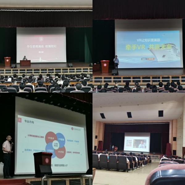 学工处副处长陶志超,教务处副处长万建香,VR产业学院副院长吴峰、万征分别作题为“学生管理规范、校规校纪”“通晓学业管理,早日成才成才”“牵手VR共赢未来”“学生人才培养方案解读”的讲座。同学们反响热烈,表示本次入学教育内容丰富,帮助大家第一次走进VR、认识VR,坚定了在江财刻苦学习、成长成材的决心。