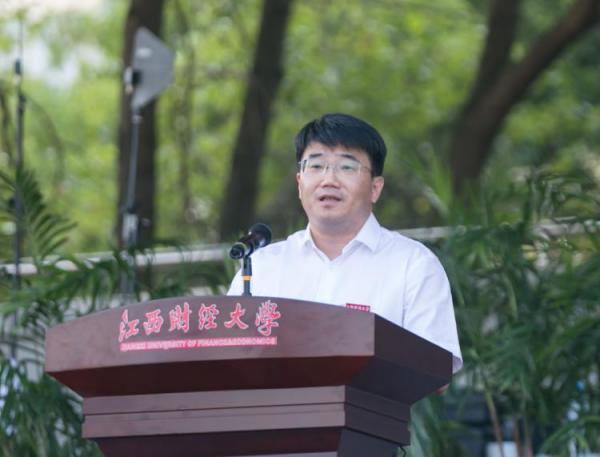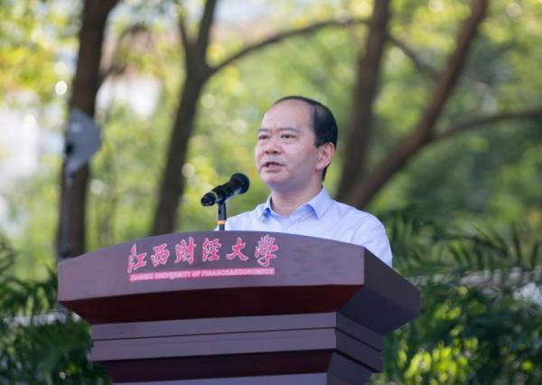 开学典礼由校党委书记卢福财主持。卢福财代表学校向加入江财大家庭的九千余名新同学表示热烈的欢迎和衷心的祝贺。“青春须早为,岂能长少年。”新的赶考之路已经开启!卢福财希望同学们在大美江财,深入践行“信敏廉毅”的校训精神,用心领悟“创新创业”的成长真谛,与名师为友,与书籍为友,与运动为友,胸怀“国之大者”,不负报国之志,用无悔的青春谱写人生新的华美乐章!