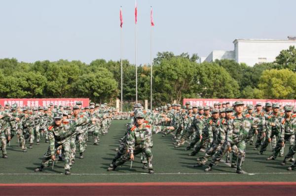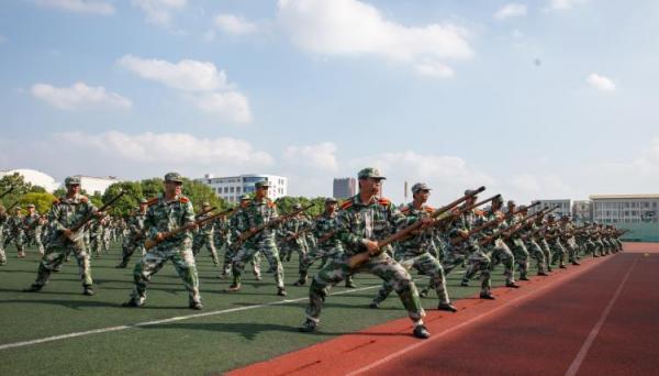 各学院的方队精神抖擞、意气风发,踏着《分列式进行曲》依次走过主席台接受检阅,嘹亮的口号声响彻整个麦庐园校区上空。他们以高昂的士气、挺拔的军姿、铿锵的步伐展现了非同凡响的军人气质,赢得了全场观众的掌声与喝彩。军体拳、刺杀操、匕首操尽露阳刚之气,健身操、队列操大展巾帼风采,队列操、团体表演更显家国情怀。