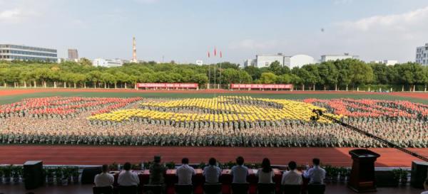 9月30日下午,江西财经大学2021级新生开学典礼暨军训总结大会在麦庐园田径场隆重举行。