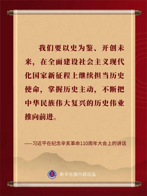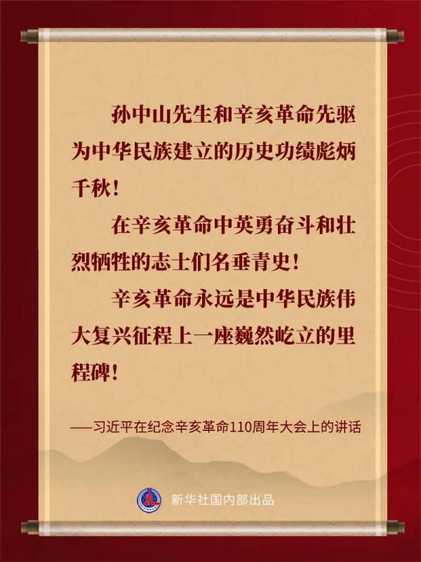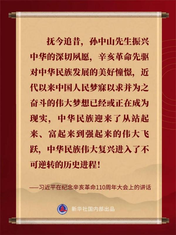 习近平在纪念辛亥革命110周年大会上的重要讲话金句