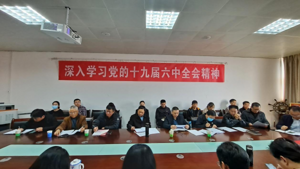 会议学习了六中全会精神,党的十九届六中全会是在中国共产党成立100周年的重大历史时刻,在开启全面建设社会主义现代化国家新征程之际召开的一次具有里程碑意义的重要会议。