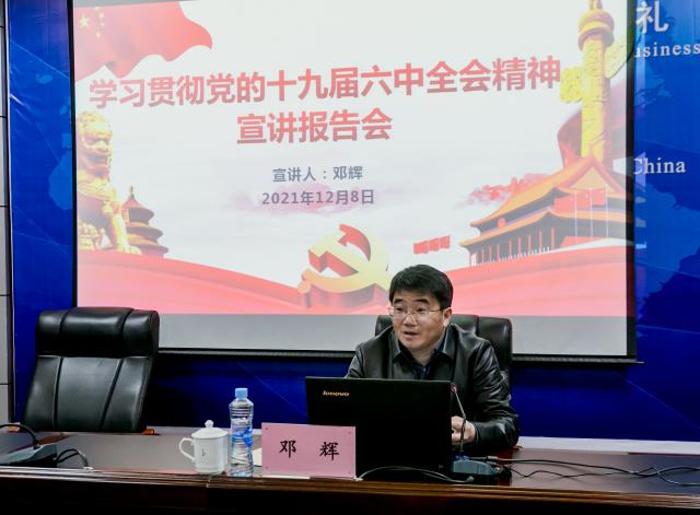 邓辉到国际经贸学院宣讲党的十九届六中全会精神