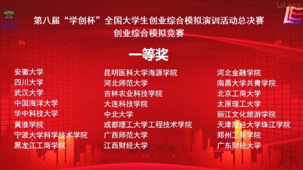 江财学子荣获第八届“学创杯”全国大学生创业综合模拟演训活动总决赛一等奖
