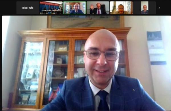 在随后的交流讨论环节,经济学院院长张利国、莫斯科国立大学经济系副主任奥列格·布克列米舍夫分别介绍了两校经济学科的发展情况。尤里·马泽毅根据双方合作意愿,提出了双方工作机制、合作方式等具体建议。邓辉对提议表示高度赞成,双方一致同意立即成立联合工作组,协调双方具体合作事项。未来双方将在数字经济及低碳经济等领域筹建联合研究院、在人才联合培养、师生互访交流等领域开展具体合作项目。(图文/江西财经大学 编辑/黄毅)