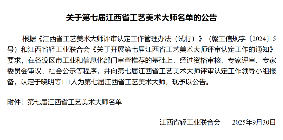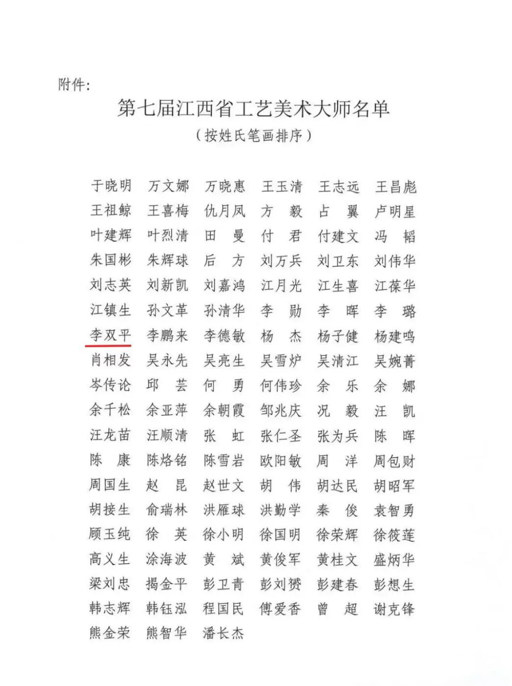 喜报|热烈祝贺南昌应用技术师范学院李双平晋升第七届江西省工艺美术大师!