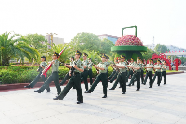 为热烈庆祝中华人民共和国成立76周年,大力弘扬爱国主义精神,引导青年学子厚植家国情怀、勇担时代使命,9月29日上午,江西工业贸易职业技术学院在国旗广场隆重举行“喜迎国庆展风采砥砺前行向未来”升国旗仪式。学院全体在家领导、全体中层干部、各系团总支书记与600余名学生代表齐聚一堂,以庄严仪式致敬祖国华诞。党委副书记吴新谱主持仪式。