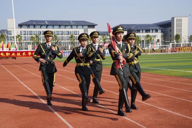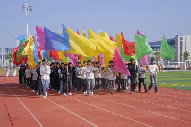 入场式中,国旗护卫队迈着铿锵有力的步伐经过主席台接受检阅。校旗、运动会会旗、校训牌以及彩旗方阵依次入场。各二级学院代表方阵精神抖擞、意气风发,他们步伐整齐、口号响亮,或挥舞彩旗,或带来精彩表演,或摆出创意队形,将青春活力与专业特色完美融合,充分展现了广大师生锐意进取、蓬勃向上的精神风貌,为秋日校园注入青春活力。