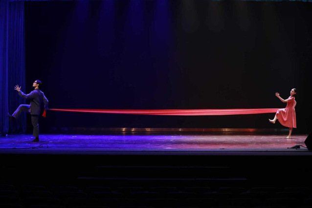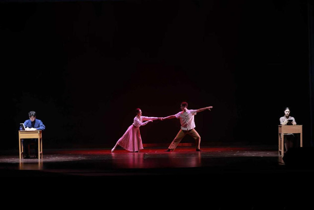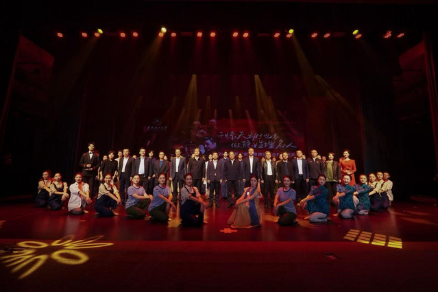 整场演出有机融合美育与思政教育,既是一场艺术盛宴,也是一堂生动的思政大课,使科学家精神在艺术表达中得以诠释。《守·望》以钱七虎院士妻子袁晖的视角,展现她数十年如一日“守小家、望大家”的坚韧守望,通过红绸传情与慈善延续,勾勒出深沉爱意与家国大义的交融;《无声的长河》借助邓稼先与许鹿希跨越生死的对话,刻画科学家以平凡之躯奔赴国难的壮怀激烈,诠释“长河无声奔去,唯爱与信念永存”的永恒主题;《他衣褶里的蓝》围绕一件旧工装和一方蓝丝巾,讲述了钱三强与何泽慧从离别、思念到戈壁重逢的动人故事,在衣褶摩挲与蓝巾闪烁之间,实现个体情感与时代使命的升华。演出在经久不息的掌声中圆满落幕,不少师生为之动容。