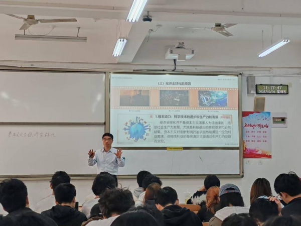 围绕这些问题,程东旺抽丝剥茧地阐释了“全球分工、全球协作”现象背后的内在动因和本质。“这不是简单的案例教学,而是把经典读进生活。”通过一件T恤的“全球之旅”,他让同学们看清了经济全球化的运行逻辑。2024级应用化学专业本科生吕亦辰深有感触地说“原来我们身上的T恤,每一步都藏着全球分工的痕迹。以前只觉得衣服是‘货架上的商品’,现在才明白它背后是资本在全球范围的流动与分配,这比课本上的文字更让人印象深刻。”