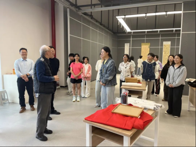 巡回展前夕校长陶也青莅临展馆,陶校长首先肯定了我校学生练习书法的刻苦,并对我校学生作品现场逐一指导并提出了改进建议,向同学们科普了近年出现的几种陶瓷篆刻,对技艺的要求更加高超,鼓励同学们努力练习书法技艺,在传承中创新进步。