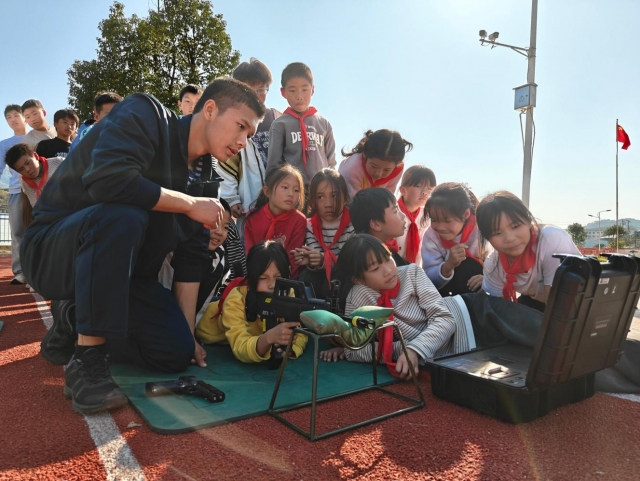 在千善乡九年一贯制学校,一场庄严的升旗仪式在操场举行,200余名师生肃立参与。随后,在定向培养军士的专业指导下,一场集军事技能培训和爱国主义教育于一体的特色活动有序展开。军体拳教学中,定向培养军士拆解动作要领,带领师生们反复练习,一招一式刚劲有力,在肢体训练中锤炼意志品质;激光模拟射击借助逼真系统,在模拟枪声与靶纸光点闪烁中,有效提升了学员的射击技能与心理素质;海军旗语则通过讲练结合,师生协作完成旗语传递任务,深化了大家对军事文化的理解与团队协作能力。