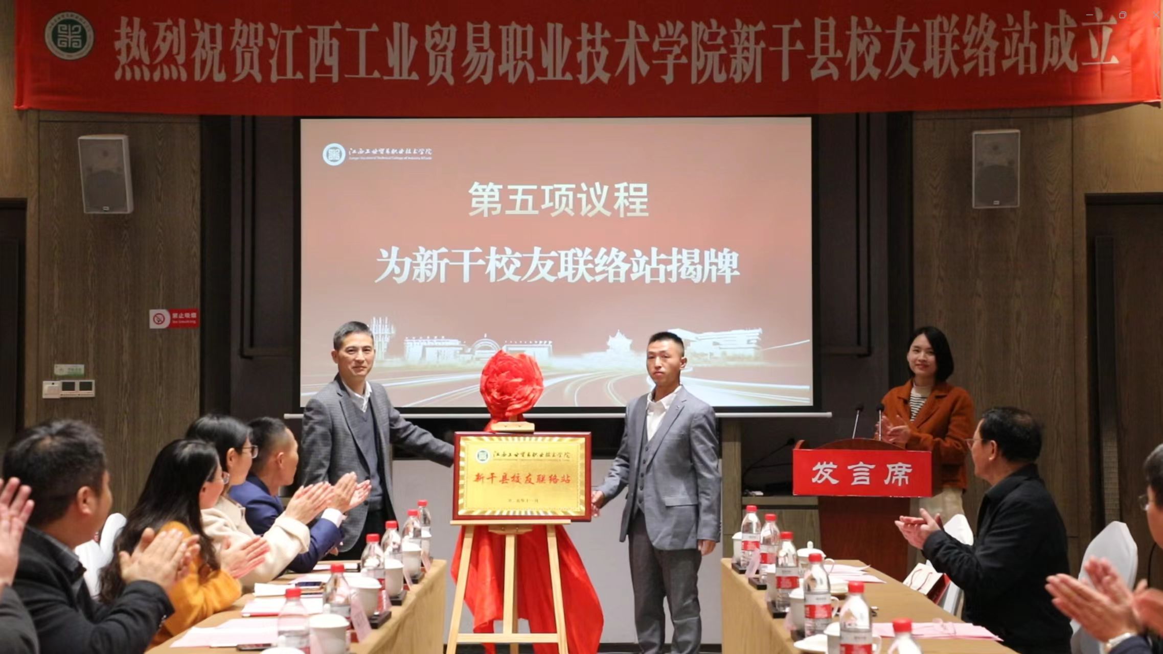 一朝赣鄱缘,一生母校情。为深化校友与母校、校友之间的联络纽带,集中展现学院办学成果与校友事业发展风采,2025年11月29日,江西工业贸易职业技术学院新干校友联络站成立大会在吉安市新干县顺利召开。受学院党委书记万晓波委托,学院党委副书记吴新谱出席大会。30余名在新干工作及新干籍校友代表、学院校友办与机电工程系教师代表齐聚一堂,共同见证联络站成立的重要时刻。大会由学院机电工程系负责人傅艳华主持。