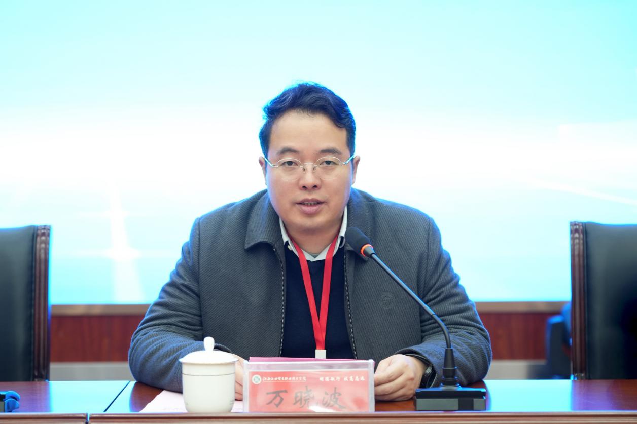 万晓波代表学院全体师生,向长期关心支持学院发展的各界人士表示感谢,向给予赛事悉心指导和大力支持的省教育厅、省职业教育学会致谢,向远道而来的裁判、监督仲裁人员、指导教师及参赛选手表示欢迎。他表示,学院将全力以赴做好赛事组织与服务保障工作,与各兄弟院校携手共进,助力江西职业教育高质量发展。