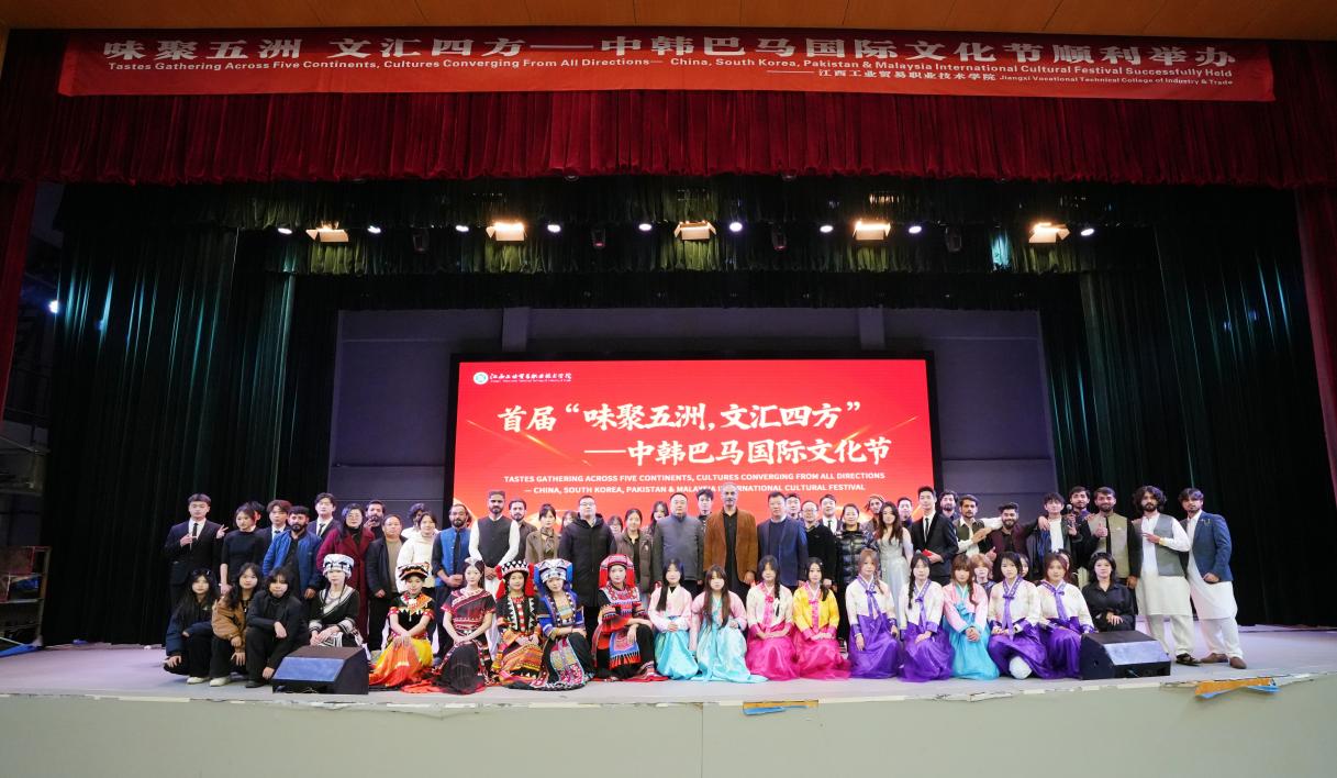 1月13日下午,江西工业贸易职业技术学院体育馆内灯光璀璨、暖意融融,学院首届“味聚五洲,文汇四方——中韩巴马国际文化节”隆重举行。中国、韩国、巴基斯坦、马来西亚四国嘉宾、友人及学院师生代表300余人齐聚,在欢声笑语中开启一场跨越国界的文化交流盛宴。受党委书记万晓波委托,党委委员,纪委书记何锐,党委委员,副院长曾聪,院长助理,院办主任,人事处处长王佳出席活动。