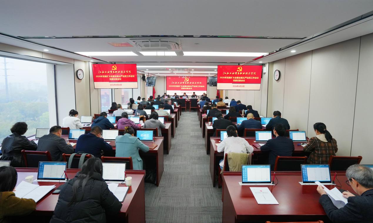 凝心聚力启新程,实干担当开新局。4月3日上午,江西工业贸易职业技术学院召开2026年党委扩大会暨全面从严治党工作会议、党委议教会议。会议深入学习贯彻习近平新时代中国特色社会主义思想、党的二十大和二十届历次全会精神,全面落实全国、全省教育工作会议部署,扎实推进树立和践行正确政绩观学习教育,系统总结2025年工作,分析研判发展形势,部署2026年重点任务,动员全校上下锚定“十五五”开局起步、国“双高”建设攻坚、建校70周年三大关键节点,凝心聚力、真抓实干,奋力开创学校高质量发展新局面。