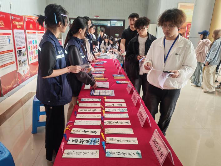 开展集中宣传。增强互动参与实效。4月15日,学校联合辖区公安、禁毒、消防、交通等部门,共同开展全民国家安全教育日集中宣传教育活动。活动现场设置主题展示、知识答题、签名、书法、现场咨询、海报展览、反邪教及禁毒样品展示等多个功能区域,有效增强了师生的国家安全意识,推动总体国家安全观内化于心、外化于行。同学们纷纷表示:“这种活动既有参与感又有获得感,维护国家安全人人有责,作为新时代的青年,我们要勇担时代使命,争做新时代国家安全的践行者。”